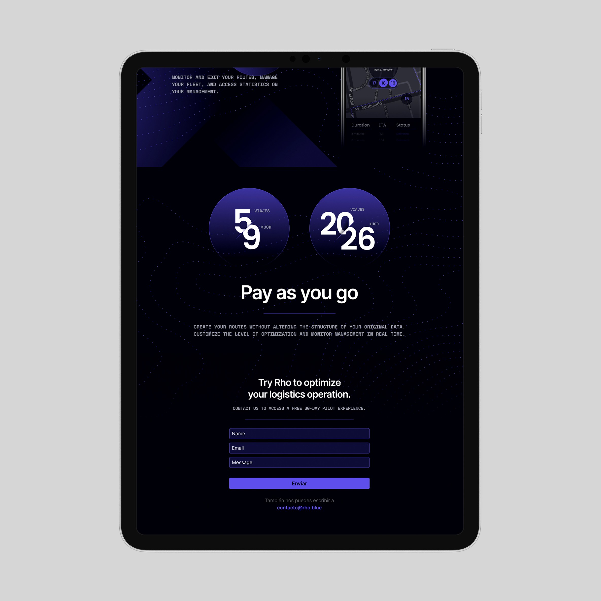 Rho is a technological platform that uses artificial intelligence to calculate the optimal distribution route for a fleet of vehicles in the context of the last mile.
